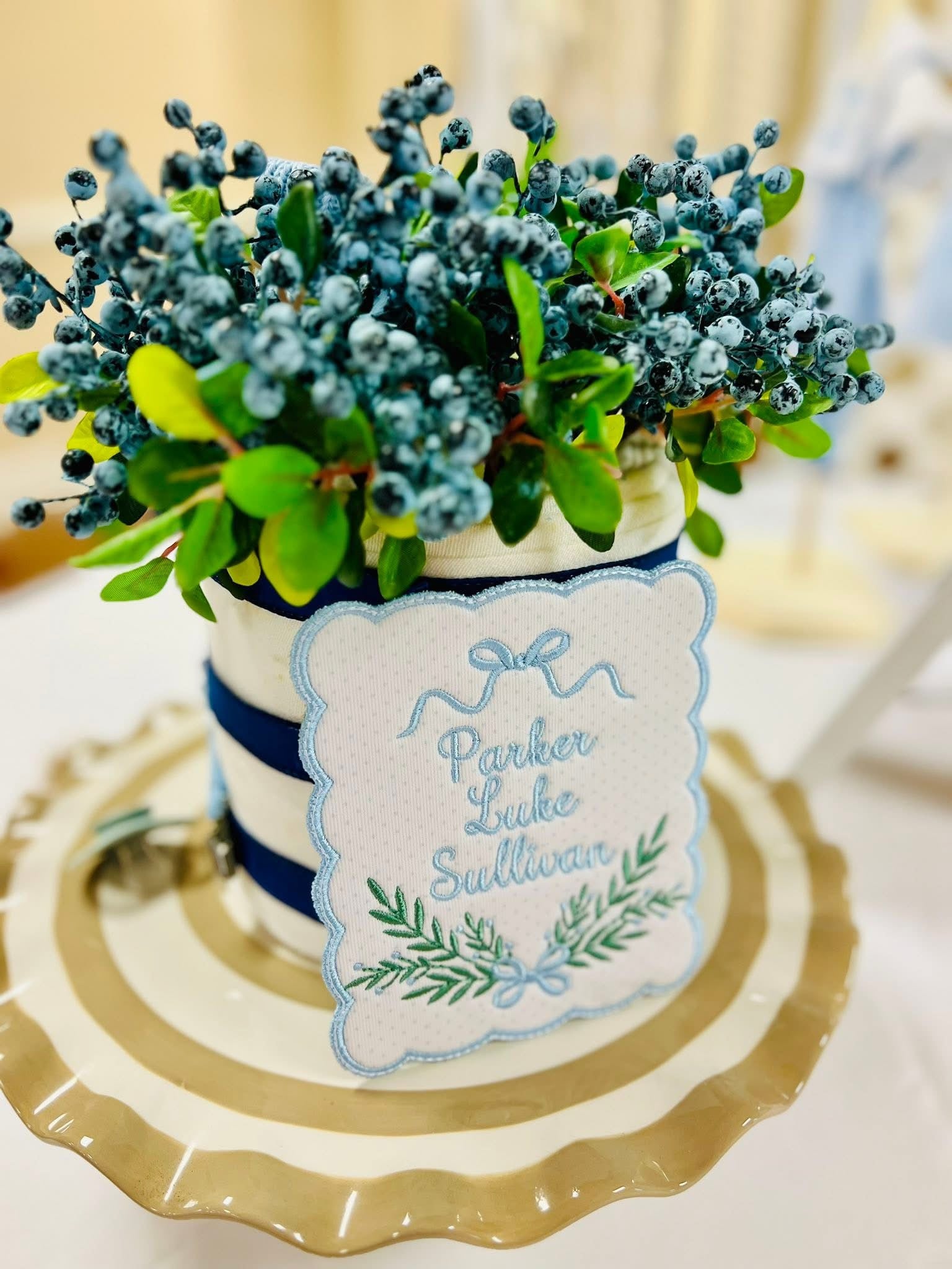 Bassinet tag will be as shown. If you have specific requests such as thread color, fabric choice, or dog color please message me or leave in note section at checkout and I can try to fulfill that request! Colors can be changed for a little girl as well!